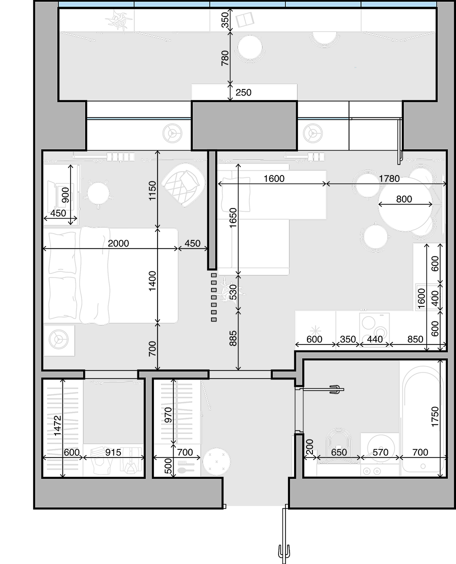 The layout focuses on functionality and comfort, creating a bright and welcoming environment suitable for both relaxation and everyday living.